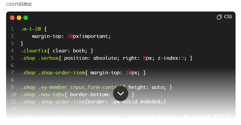 非常好看的代码显示功能,支持会员才可复制功能(不支持静态,需要支持静态需要另外找本人开发),支持开启行高达到以后出现下拉功能,有好的功能需要增加也可以与本人联系!