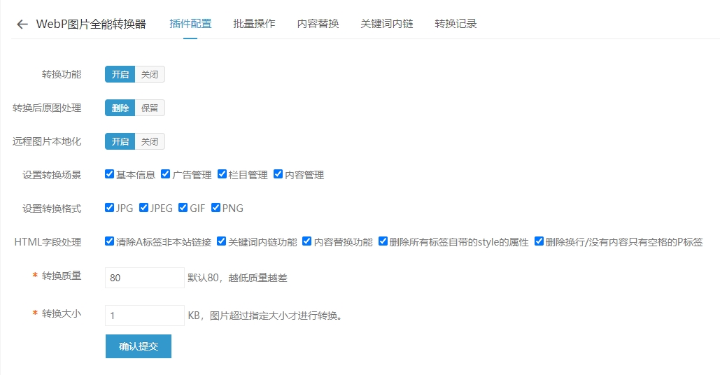 本插件可以将EYOUCMS的图片转换成webp格式,实现压缩图片体积的目的。