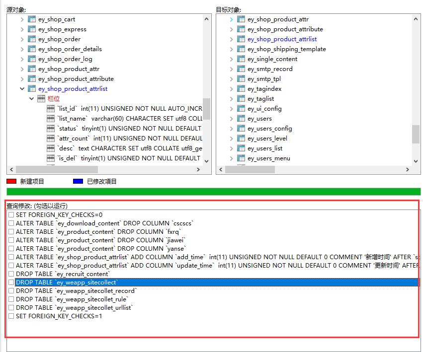 需要下载数据库对比工具,手动对比数据库(操作复杂,建议使用第一种,如第一种无法解决请再用此方法)